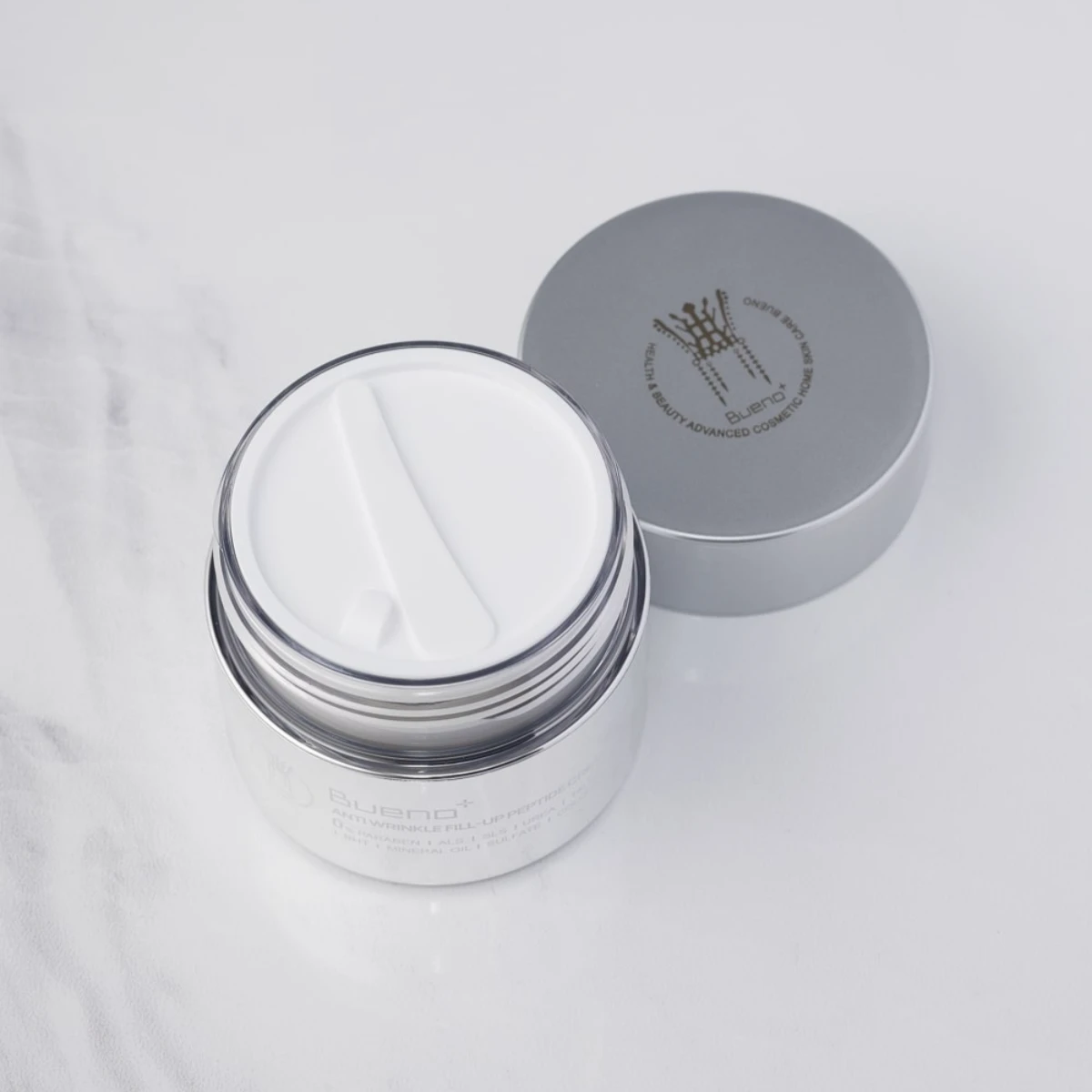 Apply BUENO Anti-Wrinkle Fill Up Peptide Cream to clean, toner-prepped skin morning and evening: dispense a pea-sized amount for the face, an additional amount for the neck and décolletage, gently massage in upward strokes, paying special attention to the forehead, outer eye corners, nasolabial folds, and jawline; before the cream, you may use a serum, and during the day, finish with SPF; allow to fully absorb before subsequent steps, avoid contact with eyes and irritated skin, and if necessary for deeper wrinkles, apply a second thin layer locally.