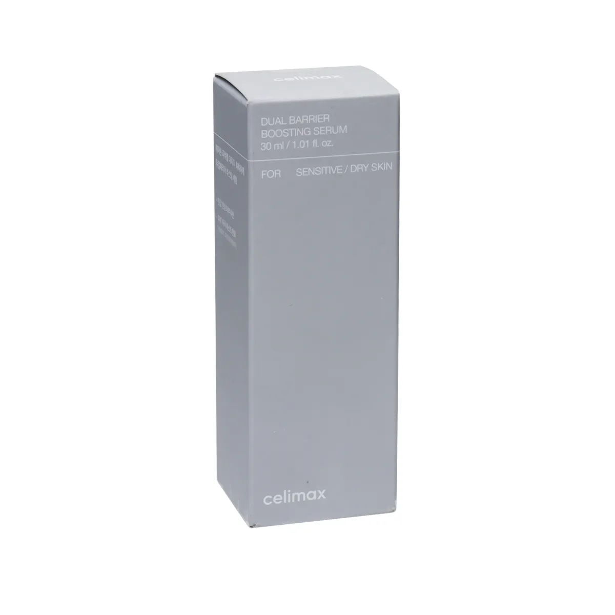 On clean, toner-dampened skin, apply 2–3 drops (or 1–2 pumps) of CELIMAX Dual Barrier Boosting Serum onto face and neck, gently spread and pat in until absorbed; use morning and evening, apply moisturizer after the serum, and during the day, additionally apply SPF; if needed, apply a second thin layer to dry areas; for sensitive skin, start with once a day and gradually increase to twice daily; avoid contact with eyes and irritated or damaged skin.