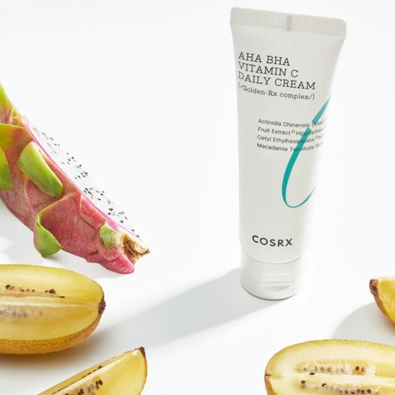 COSRX Refresh AHA BHA Vitamin C Daily Cream combines the power of alpha hydroxy acids (AHA) and beta hydroxy acids (BHA) to exfoliate and refine skin texture. This cream is formulated with 5% AHA derived from natural fruit extracts, which gently sloughs away dead skin cells, promoting cell turnover and revealing a brighter, more radiant complexion. The 1% BHA, sourced from willow bark, penetrates deep into the pores to help unclog them, reducing the appearance of acne and blemishes.