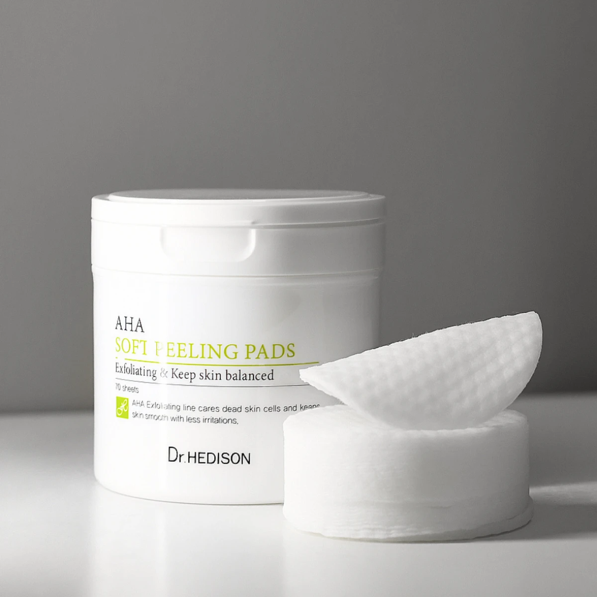 The accumulated layer of dead cells on the skin’s surface not only blocks light reflection but also hinders active ingredients from other products from reaching deeper layers. This is where alpha hydroxy acids (AHAs) step onto the stage – molecular architects capable of dissolving the intercellular bonds that hold outdated cells together. It is precisely this principle of renewal and liberation that DR. HEDISON AHA Soft Peeling Pads operate on. These are not merely cleansing pads, but carriers of a precisely balanced formula. Their essence is to act targetedly and effectively, while preserving the integrity and calmness of the epidermis.
