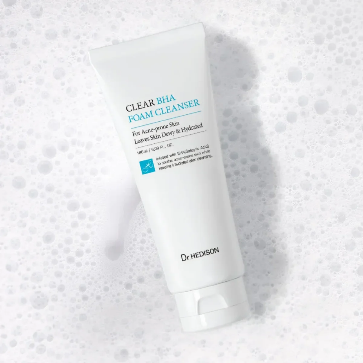 DR. HEDISON Clear BHA Foam Cleanser moisten the face with lukewarm water, squeeze a small amount of the product onto the palms, lather with a little water and gently massage the facial skin for 30–60 seconds, avoiding the eye area, then rinse thoroughly with water; use in the morning and (or) evening as needed, and if the skin is sensitive or prone to dryness, start with 1 time per day or every other day.