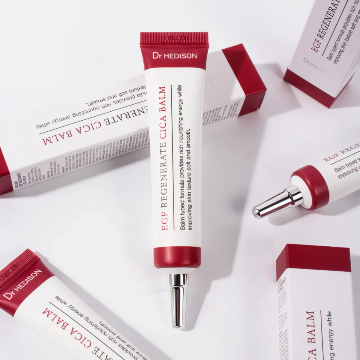 DR. HEDISON EGF Regenerate Cica Balm apply to clean, dry skin as the final step of your skincare routine: take a small amount, gently spread a thin layer over the face or on target areas (especially irritated, red, or dried-out patches), lightly pat until absorbed; use morning and evening or as needed, during the day after application apply a protective sunscreen, avoid contact with eyes and on open wounds, discontinue use if irritation occurs.