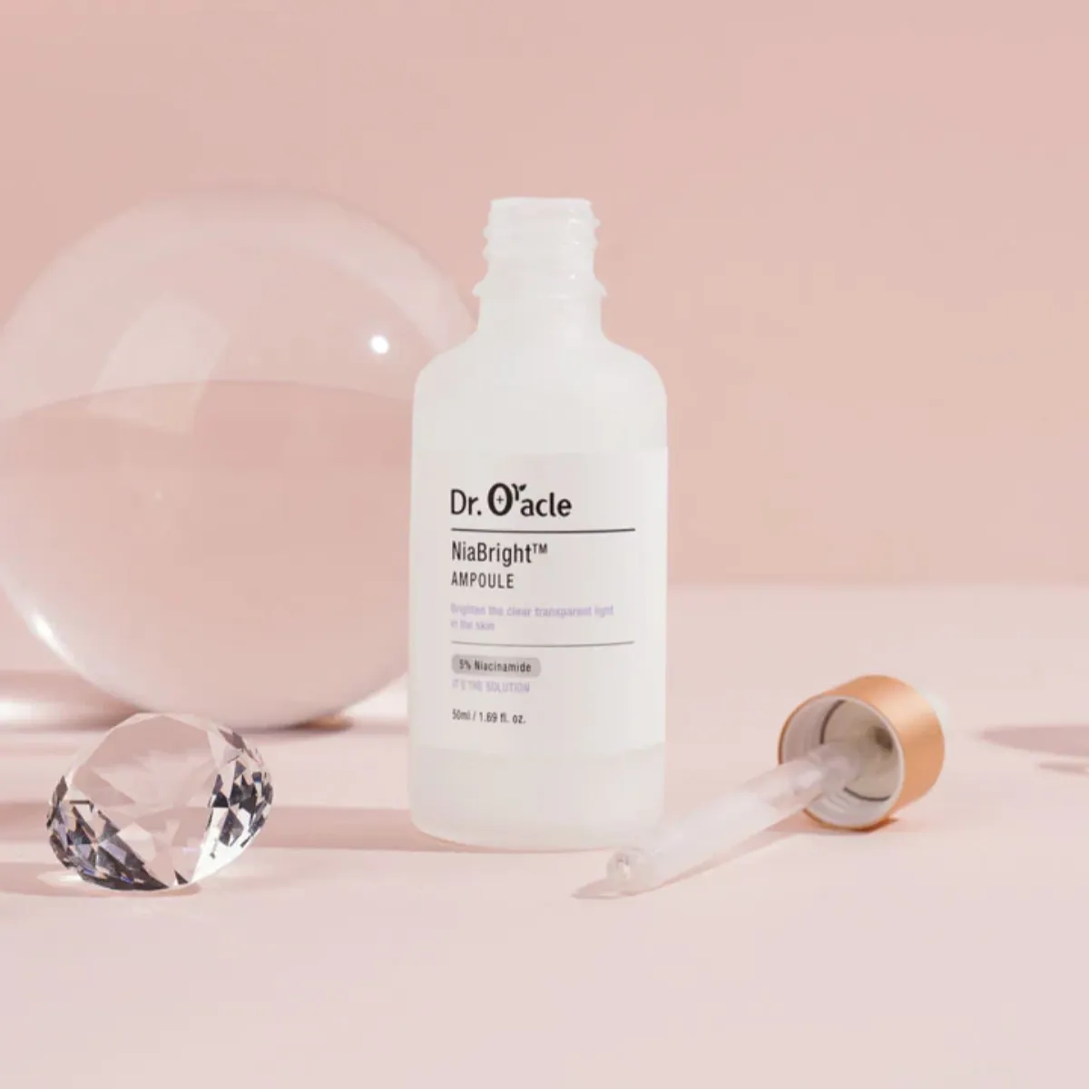 Use DR. ORACLE NiaBright™ Ampoule on clean and toned skin in the morning and/or evening. Apply a few drops onto the face and neck, gently massage in or pat until fully absorbed. Afterward, apply your usual moisturizer.