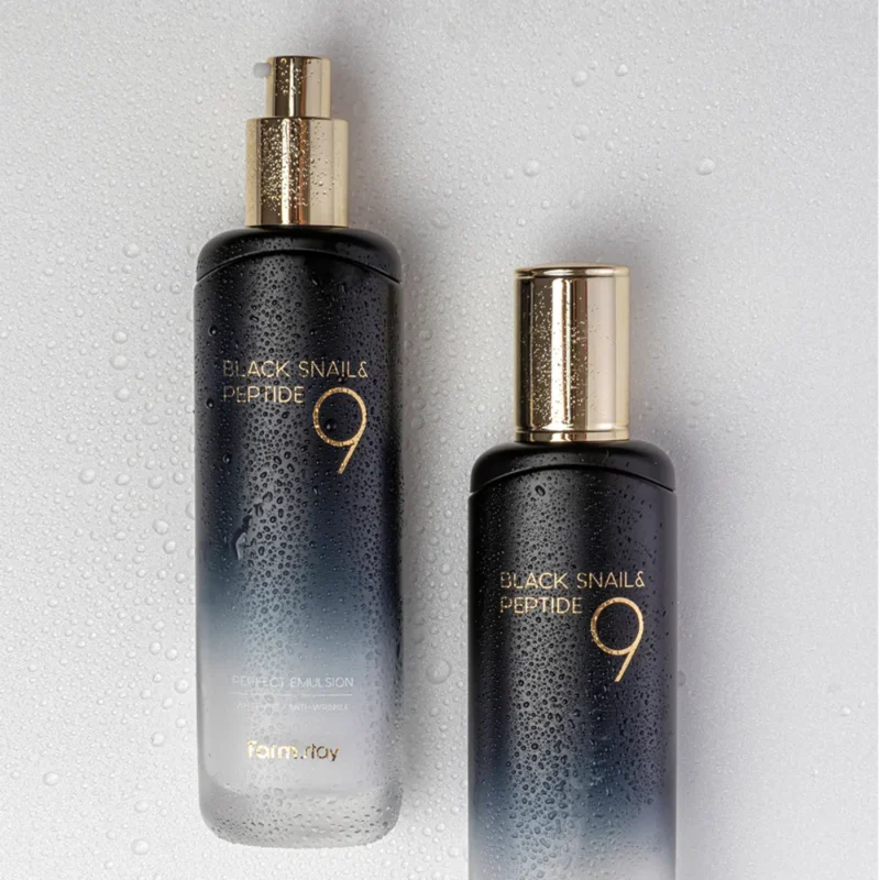 FARMSTAY Black Snail & Peptide 9 Perfect Toner is a scientifically crafted blend that harnesses the power of potent ingredients to revitalize and rejuvenate skin. This toner contains a unique formulation that combines the benefits of black snail mucin and nine different peptides, designed to enhance the skin’s overall texture and appearance.