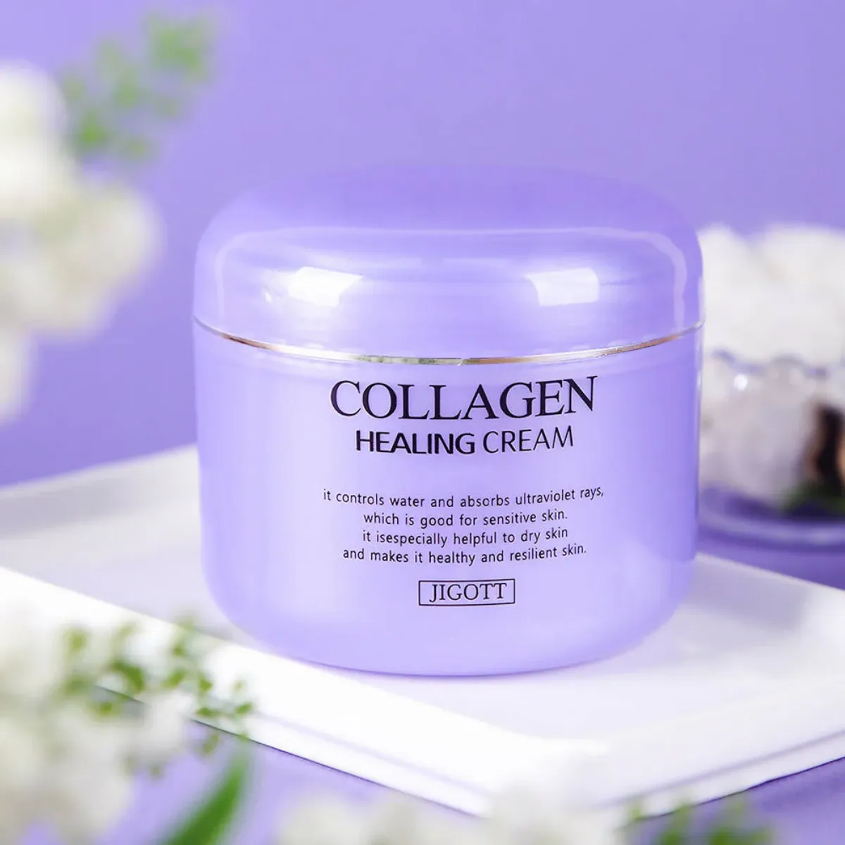 On clean, dry skin, apply a small amount of JIGOTT Collagen Healing Cream, then gently massage into the face and neck using circular motions until the cream is fully absorbed. Use morning and/or evening for best results and to help the skin recover.
