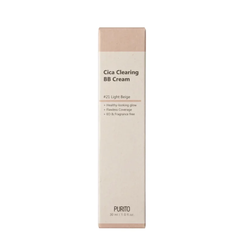To use PURITO SEOUL Cica Clearing BB Cream in 21 Light Beige, start by cleansing and moisturizing your face to create a smooth base; then, dispense a small amount of the BB cream onto your fingertips or a makeup sponge. Dot the cream evenly across your forehead, cheeks, nose, and chin, and blend it into your skin using gentle, outward motions, ensuring even coverage for a natural finish. For areas needing more coverage, you can apply an additional layer as needed, and finish your makeup routine with your preferred setting powder or spray for long-lasting wear.