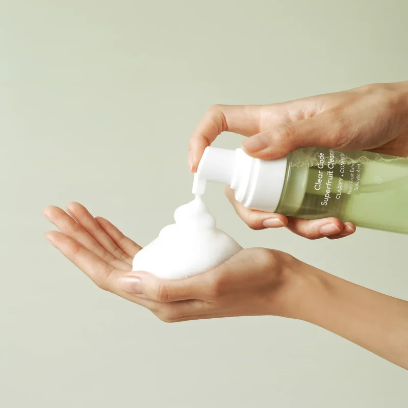 To use PURITO SEOUL Clear Code Superfruit Cleanser, first wet your face with lukewarm water to help open up the pores, then dispense an appropriate amount of the cleanser into your hands and gently lather it between your palms to create a rich foam. Apply the foam to your damp face using circular motions, focusing on areas that tend to accumulate excess oil and impurities. Massage the cleanser into your skin for about 30 seconds to a minute, then rinse thoroughly with lukewarm water, ensuring all product is removed. For best results, use this cleanser twice daily, in the morning and evening, followed by your favorite toner and skincare routine.