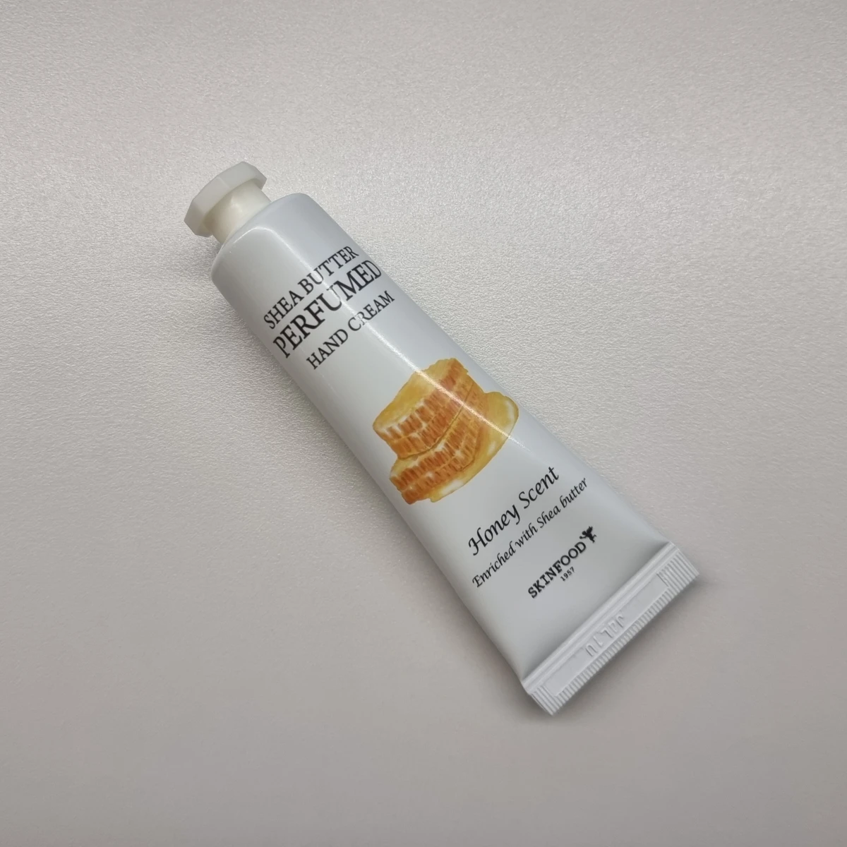 Apply a small amount of SKINFOOD Shea Butter Perfumed Hand Cream Honey Scent onto clean, dry hands and gently massage into the skin until fully absorbed. Use this cream regularly as needed throughout the day, especially after washing your hands or whenever skin feels dry, to ensure continuous hydration and protection.